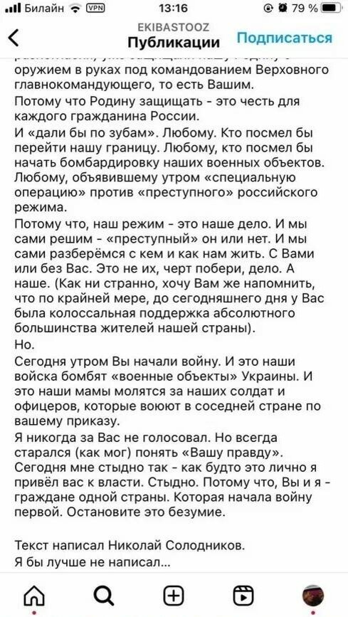 «Мне знакомы многие люди разного соцстатуса. И я хочу подчеркнуть, что точка невозврата уже пройдена. Однозначно. Я не знают, успели ли доложить об этом Верховному или его приближённым людям, но моё мнение однозначно. Если недругам, оставившим Родину при первой же приманке Запада, вдруг разрешать вернуться обратно, выдадут им эфирное время, позволят гастролировать и зарабатывать десятки-сотни миллионов – я просто развернусь и уйду. Уверена, моё решение поддержат и другие. Терпеть такое отношение больше незачем. Либо так, либо никак иначе.»
